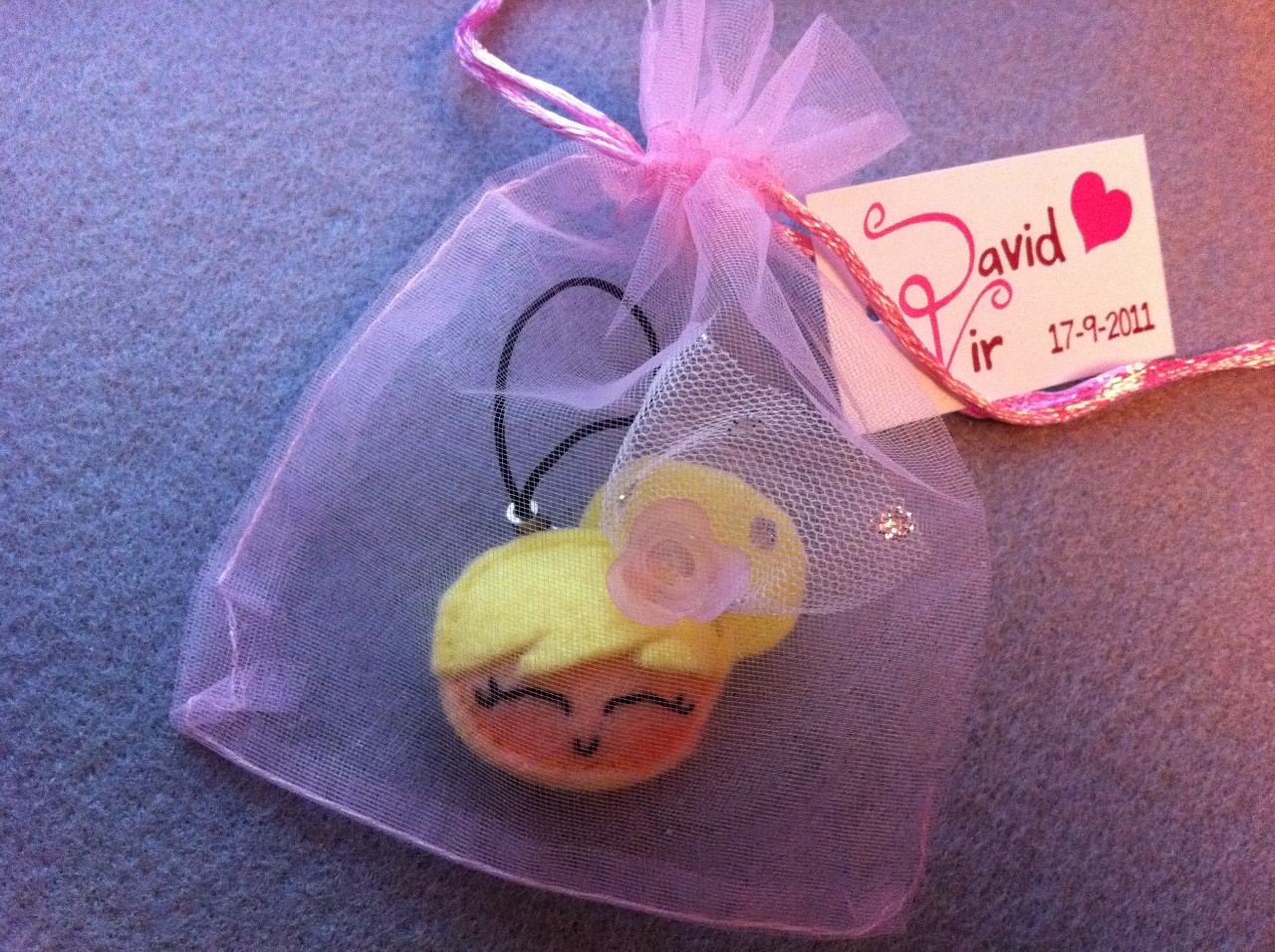 Puedes elegir el modelo que quieras de los que aparecen en la web (o proponerme lo que tú quieras si no has encontrado exactamente lo que buscas). También puedes pedirme un "mix" si las prefieres variadas o todas diferentes. Todas las Nenitas se entregan en bolsitas de organza con su etiqueta personalizada.